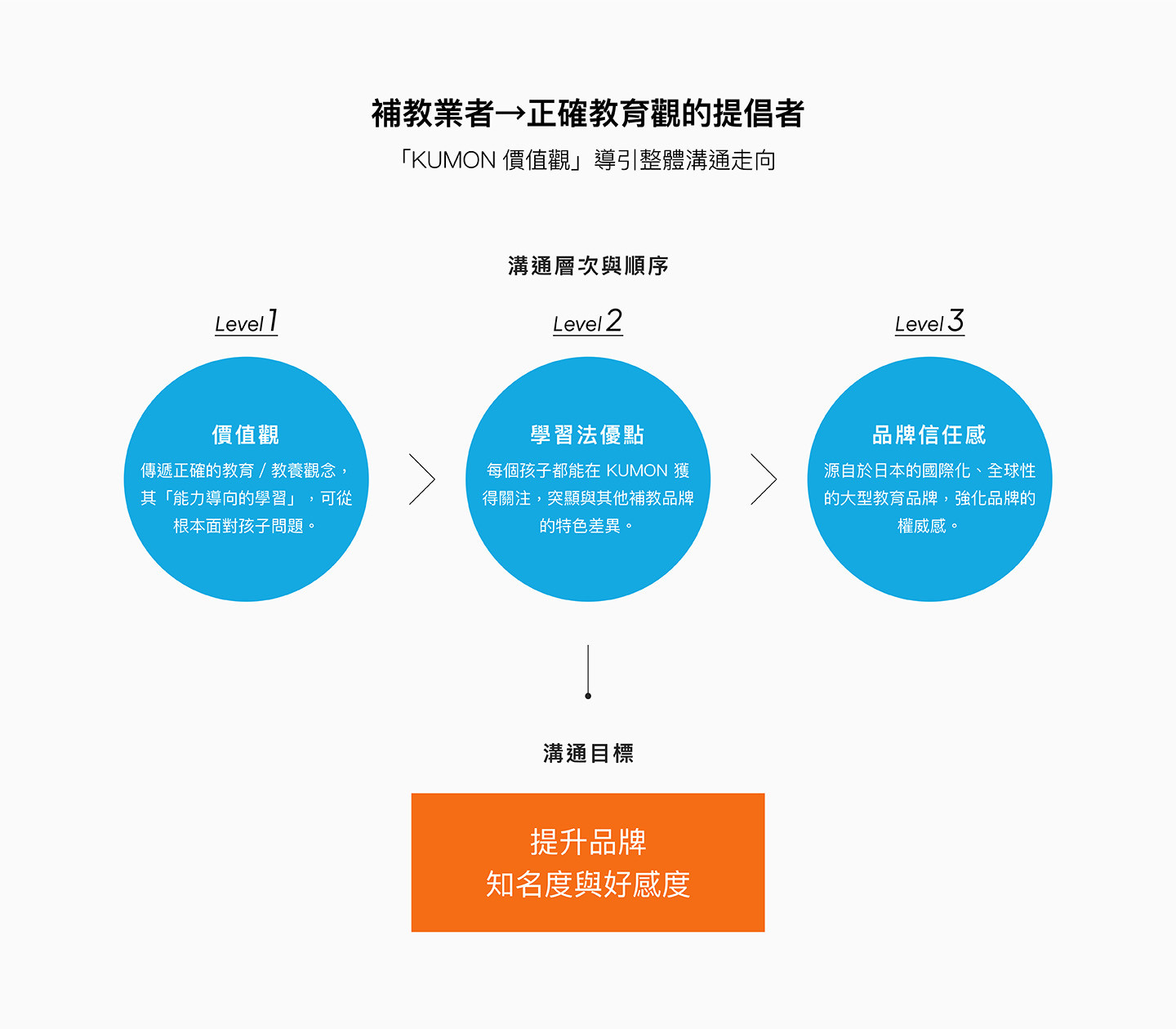 源於日本的國際連鎖教育品牌 KUMON,其前身「功文」在台深耕數十年,在完成轉型展店的階段性任務後,深感品牌在市場上缺乏有效的溝通策略,因此與 DDG 合作展開為期一年的品牌溝通專案,收斂分散龐雜的品牌訊息,擬定有效的溝通策略與方向,並產製能形塑品牌精神的內容,達到有感溝通品牌核心價值的目的。