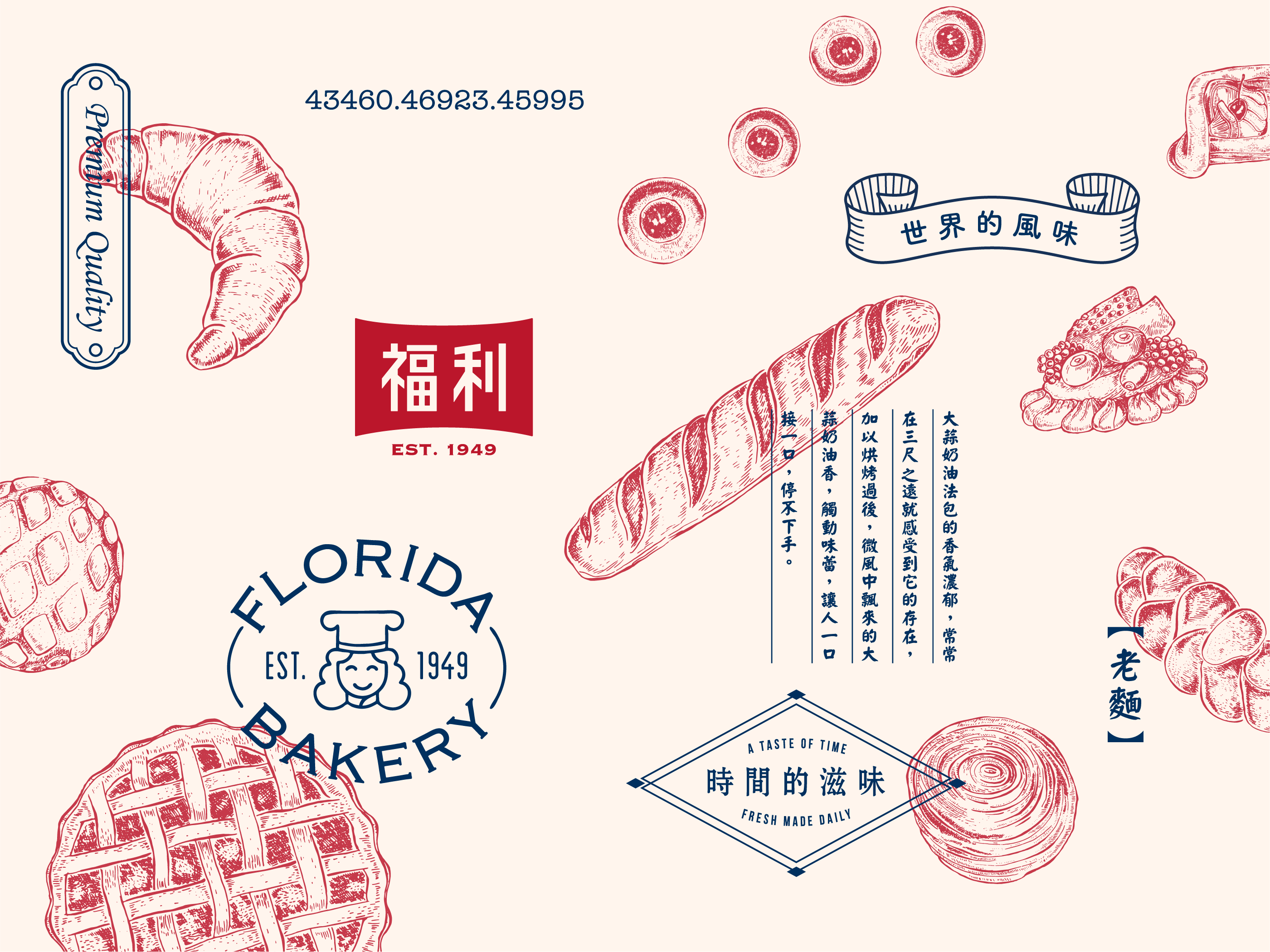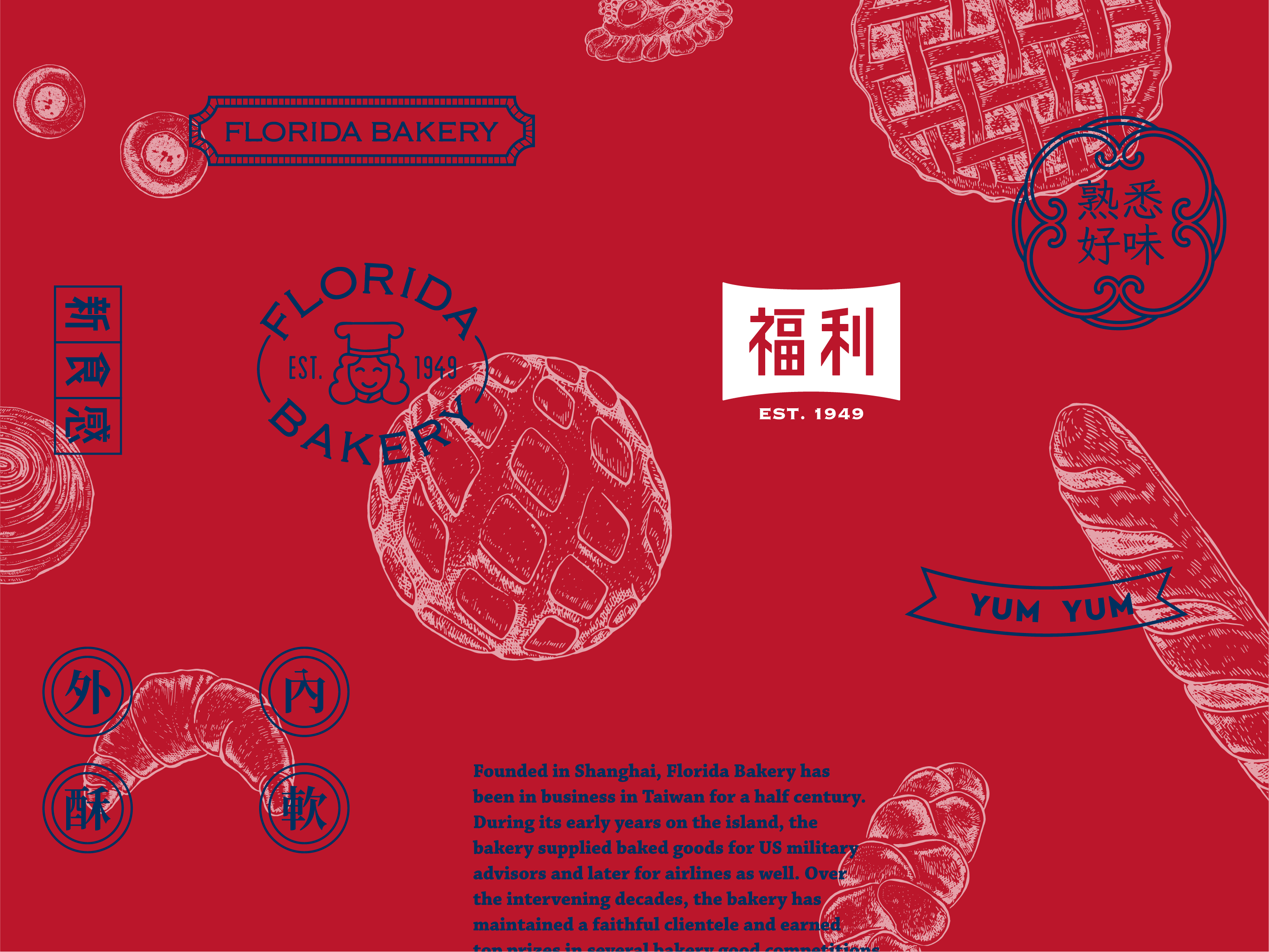 DDG embarked on a mission to explore Florida Bakery’s heritage and reintroduce it with a modern twist. As part of this effort, DDG’s design team journeyed back to the brand’s beginnings. Inspired by Florida Bakery’s first store sign in the 1940s, the design team placed the Chinese name at the center of the new identity, while reintroducing the curvature found in the original signage. The new identity retired the female chef icon, prominent in the most recent logo, creating a sense of authenticity for the new look. The icon has now become part of a series of visual elements—sketches of Florida Bakery’s signature pastries that speak of Florida Bakery’s story.