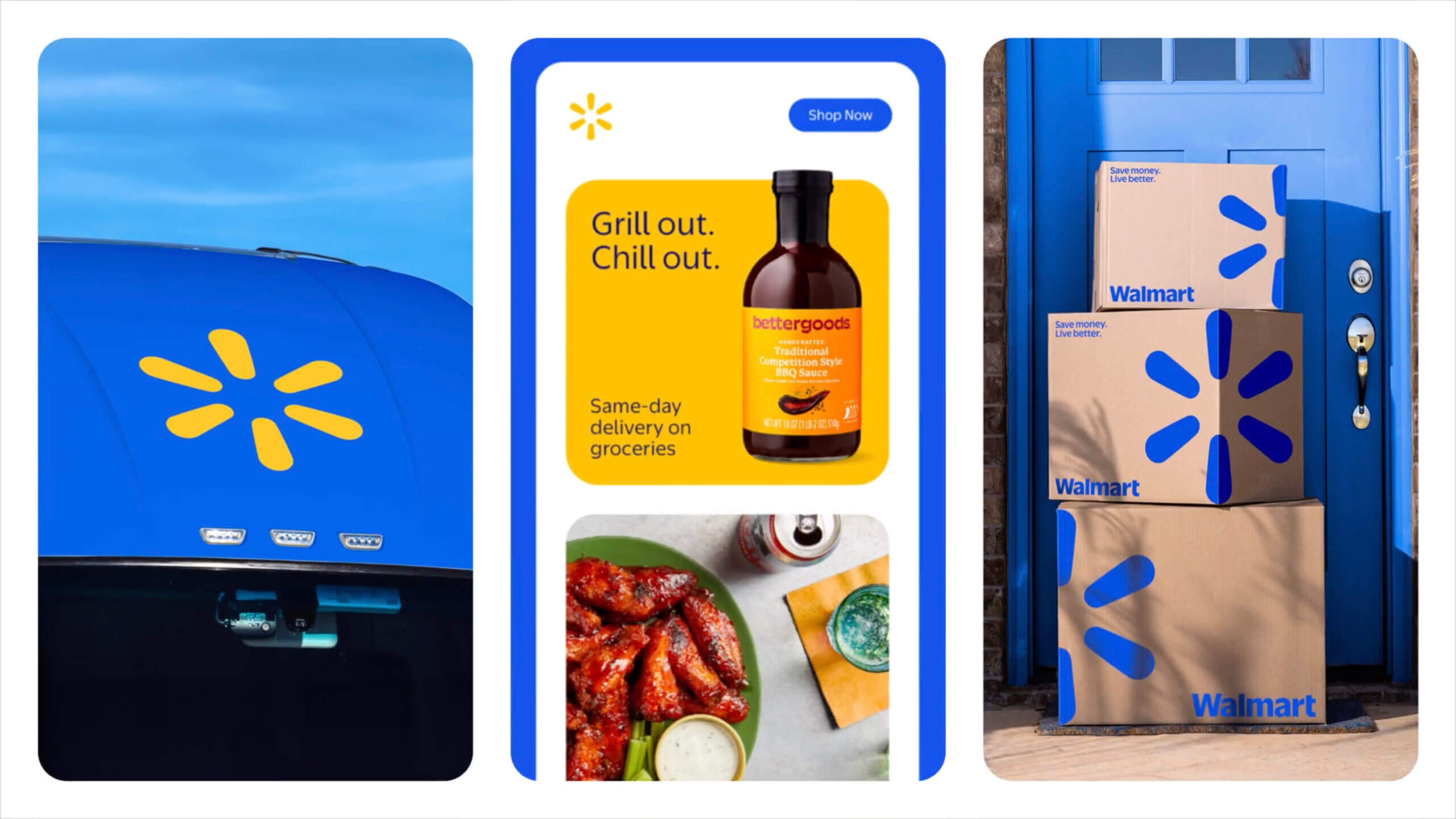 在視覺層面,變化多半屬於方向性的微調:Spark 標誌更圓潤,標準字回望 80–90 年代的 Walmart,字體系統更厚實,色彩延續 True Blue 與 Spark Yellow,只在必要之處進行修正。品牌語氣依然親近,持續貼近日常生活的真實情境。
