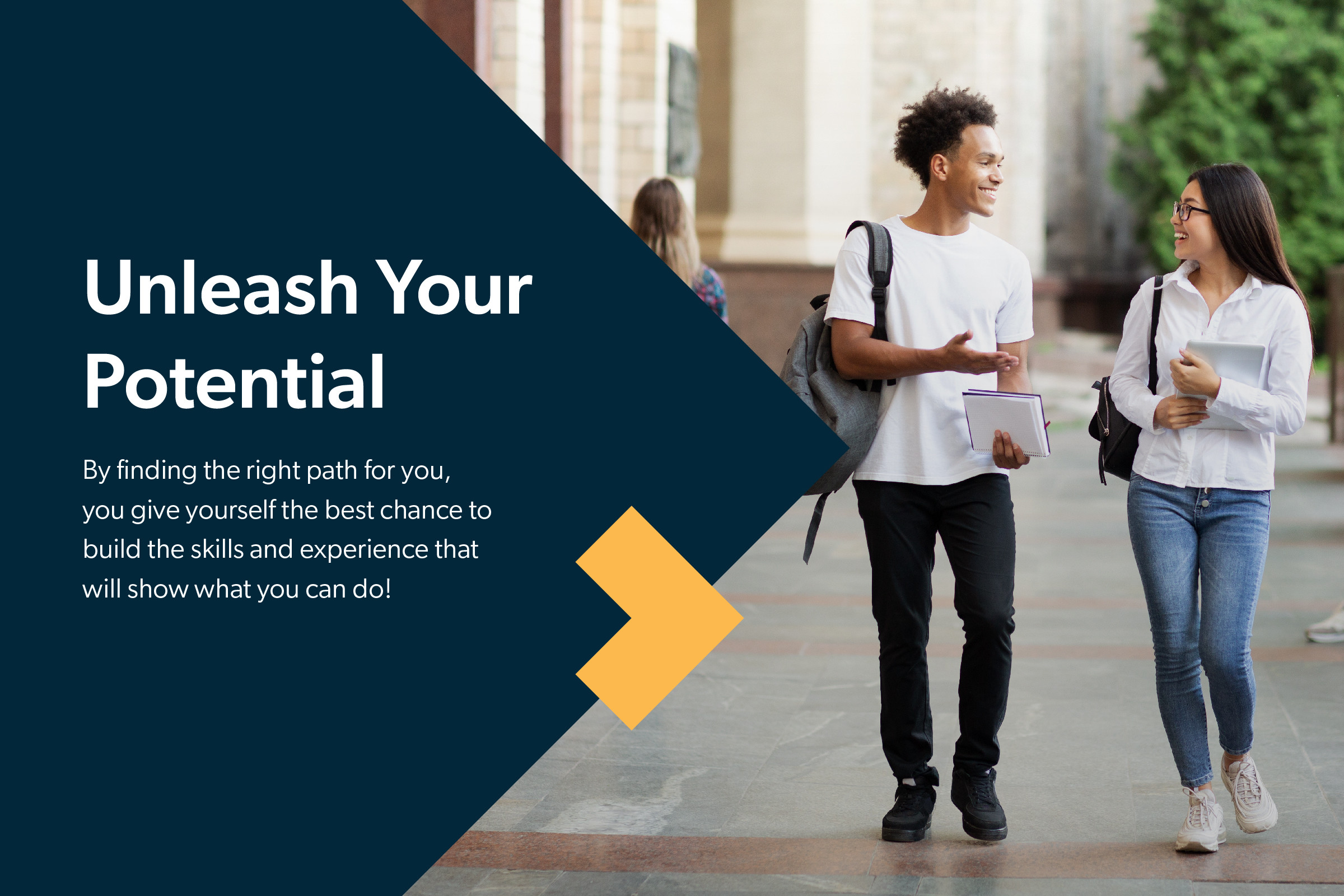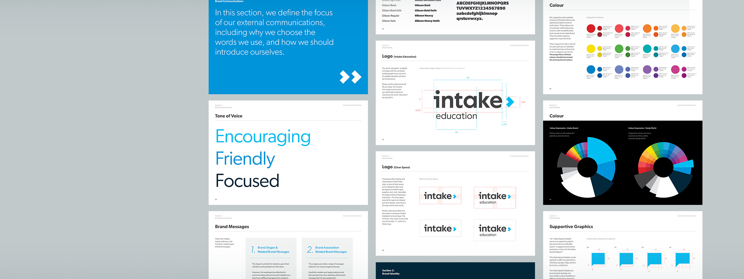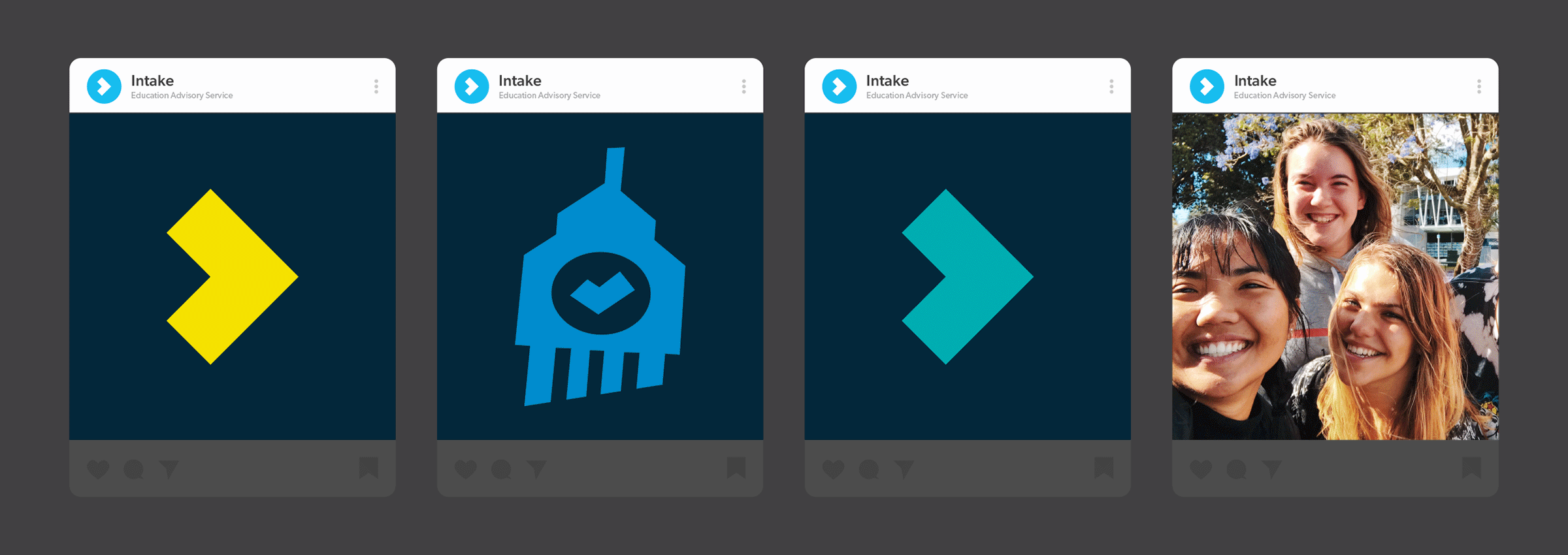 視覺上,DDG 希望傳遞 Intake 專業且具親和力的形象,更重要的是,讓大家深刻感受核心理念——「透過專業諮詢,探索海外教育的機會,進而影響學生的未來」。視覺元素的運用,不管是象徵指引學生方向的箭頭,或是開啟學生與 Intake 交流的對話框,都一再展現品牌的精神與理念。